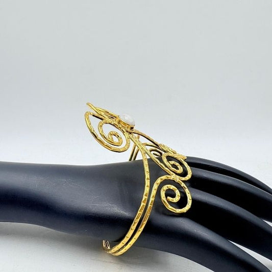 Golden Spiral Moonstone Statement Cuff Bracelet