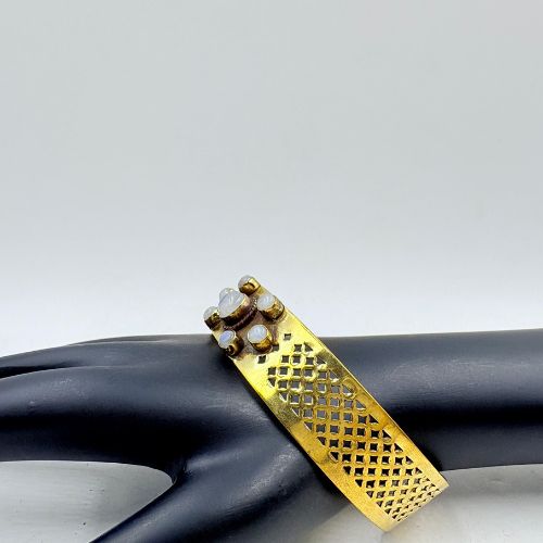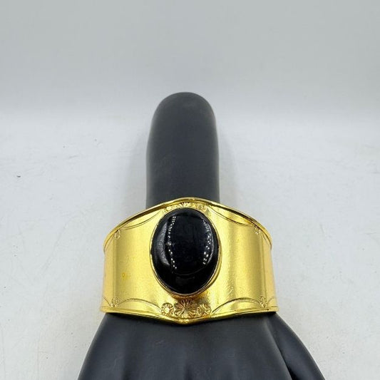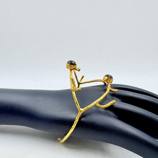 Handmade Tiger Stone Brass Bangle with Gold Plating