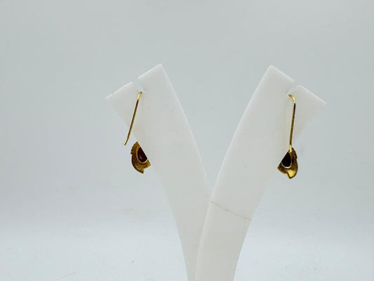 Brass Dangle Earrings with 18K Gold Plating – Red Stone Vintage Design