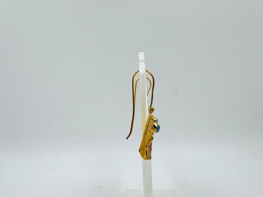 Brass Blue Stone Earrings – 18K Colour Gold Plated Leaf Design Dangle Earrings