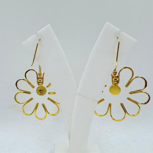 Brass Floral Dangle Earrings with 18K Gold Plating – Open Petal Flower Design