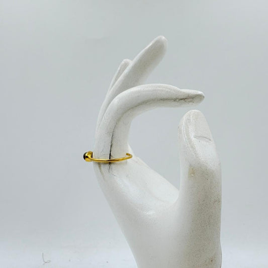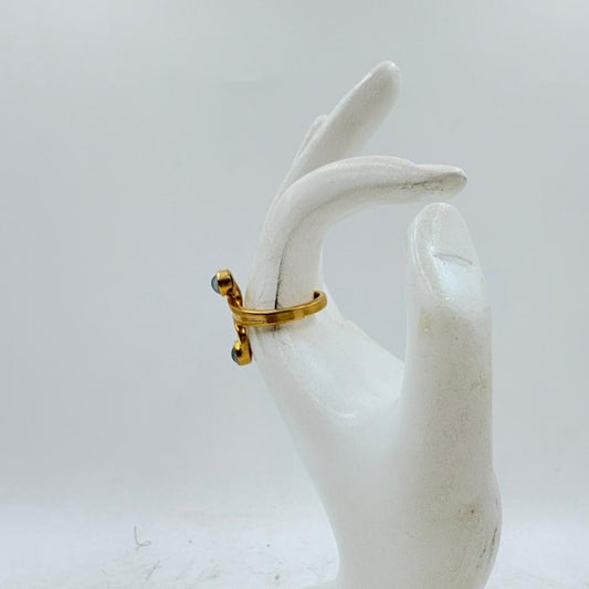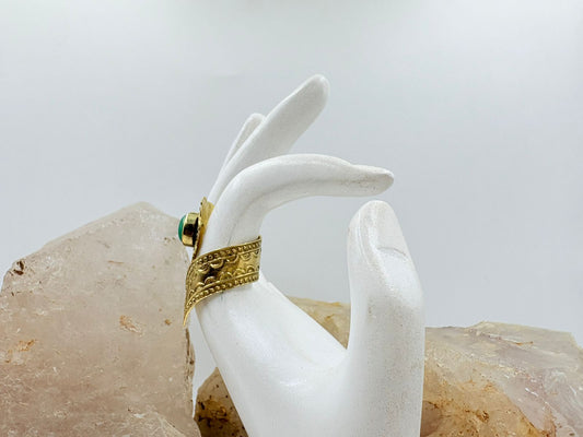 Handmade Brass Ring with Green Stone & 18K Gold Plating