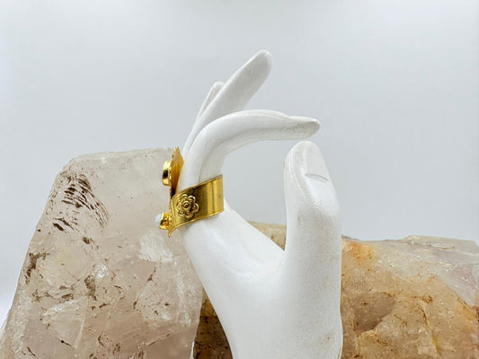 Brass Dual Moonstone Ring – Handcrafted Adjustable Gold Plated Statement Ring
