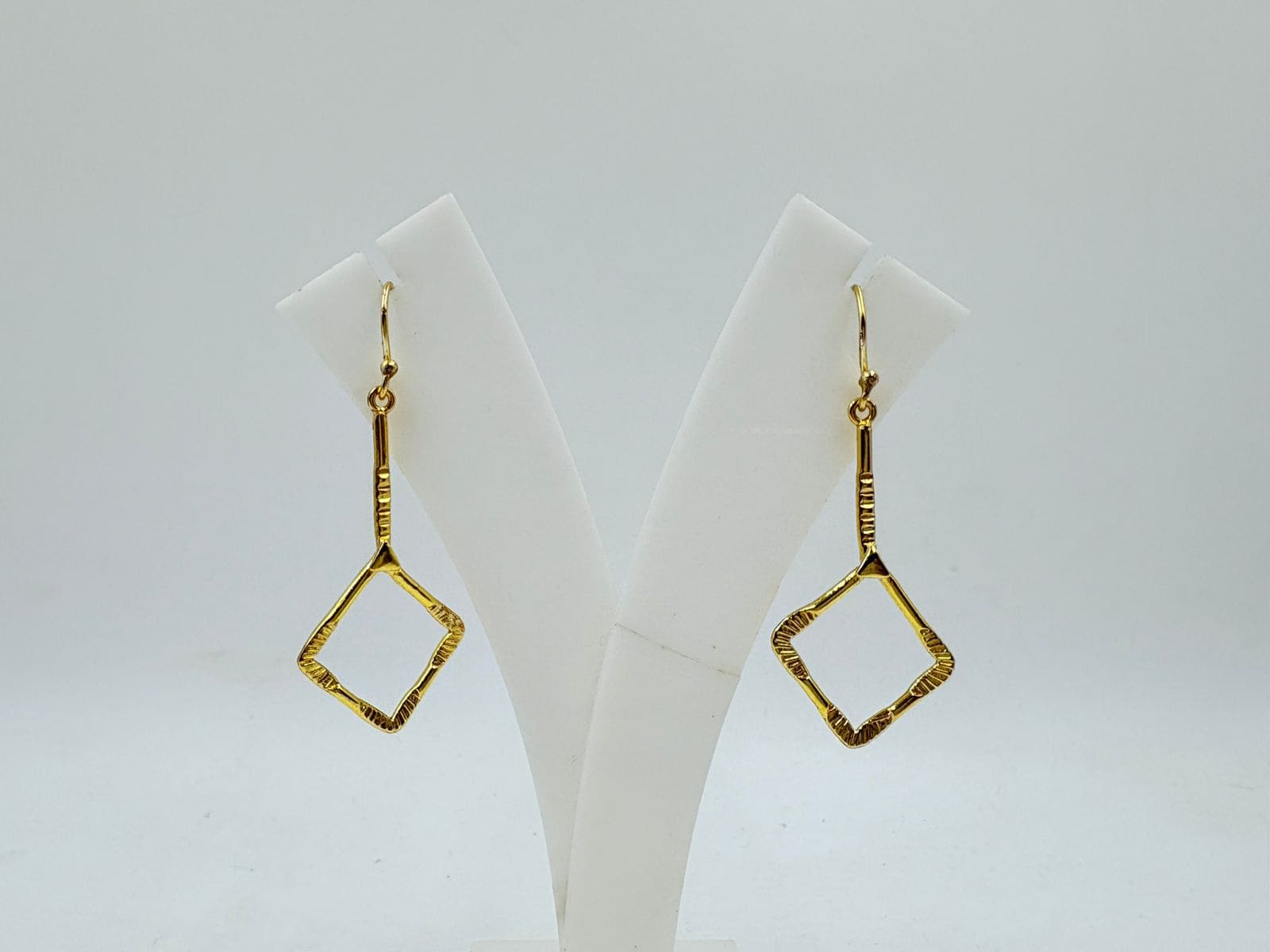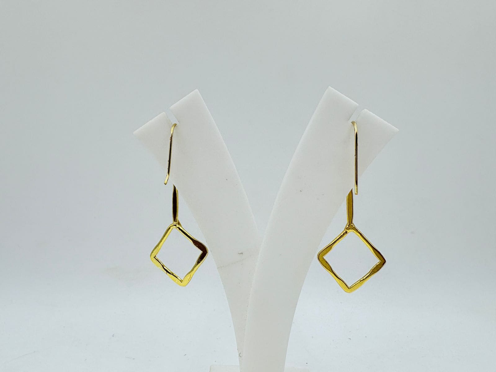 Affordable, chic, and hypoallergenic, these brass geometric dangle earrings with 18K gold plating – square outline design (model no. 23) are ideal for gifting or personal styling. Elevate your look with these brass geometric dangle earrings with 18K gold plating – square outline design (model no. 23) today.