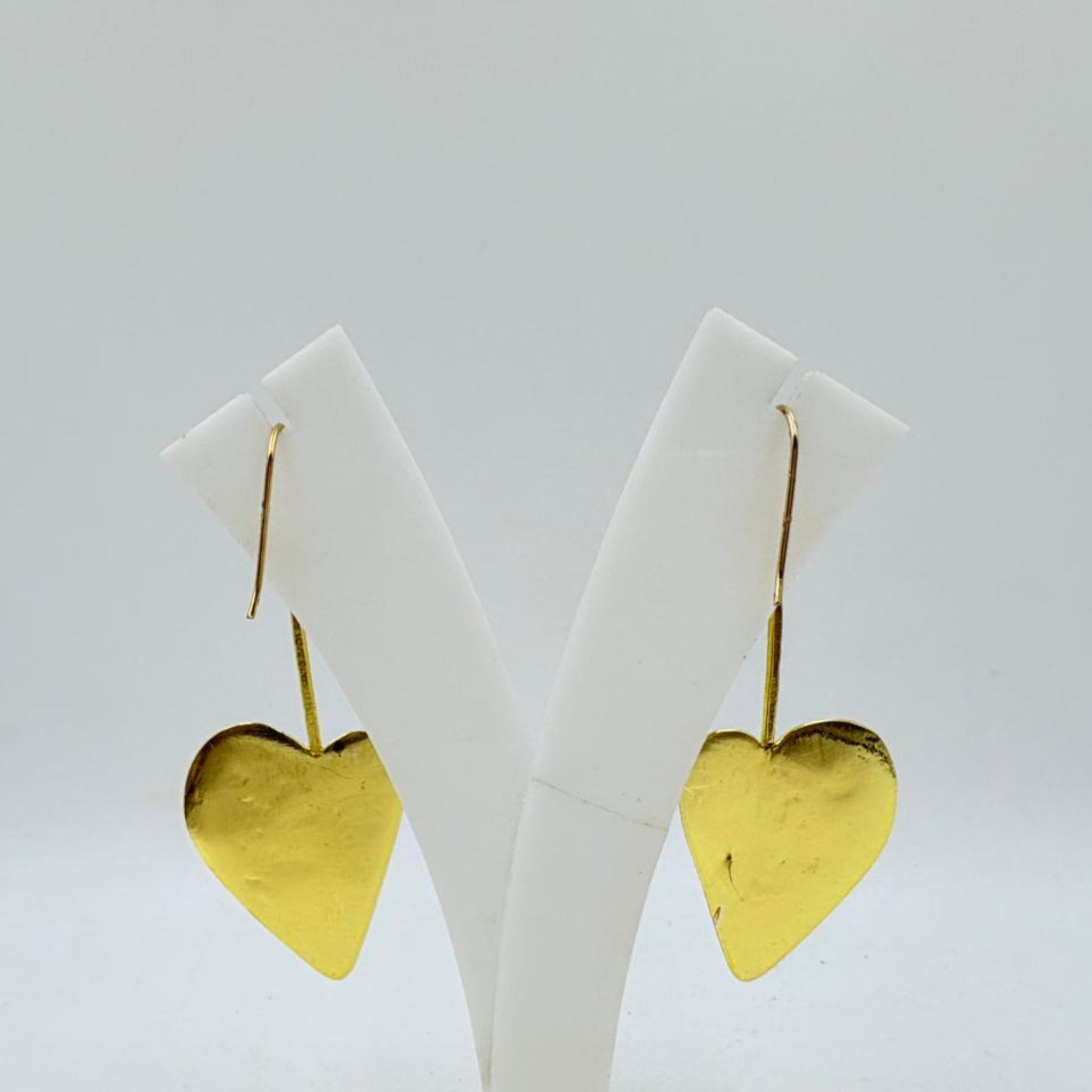 Perfect for romantic occasions, festive celebrations, or casual styling, these brass heart dangle earrings with 18K gold plating – floral engraved design (model no. 17) add a graceful touch to any outfit. The detailed floral motif makes these brass heart dangle earrings with 18K gold plating – floral engraved design (model no. 17) a unique and eye-catching accessory.