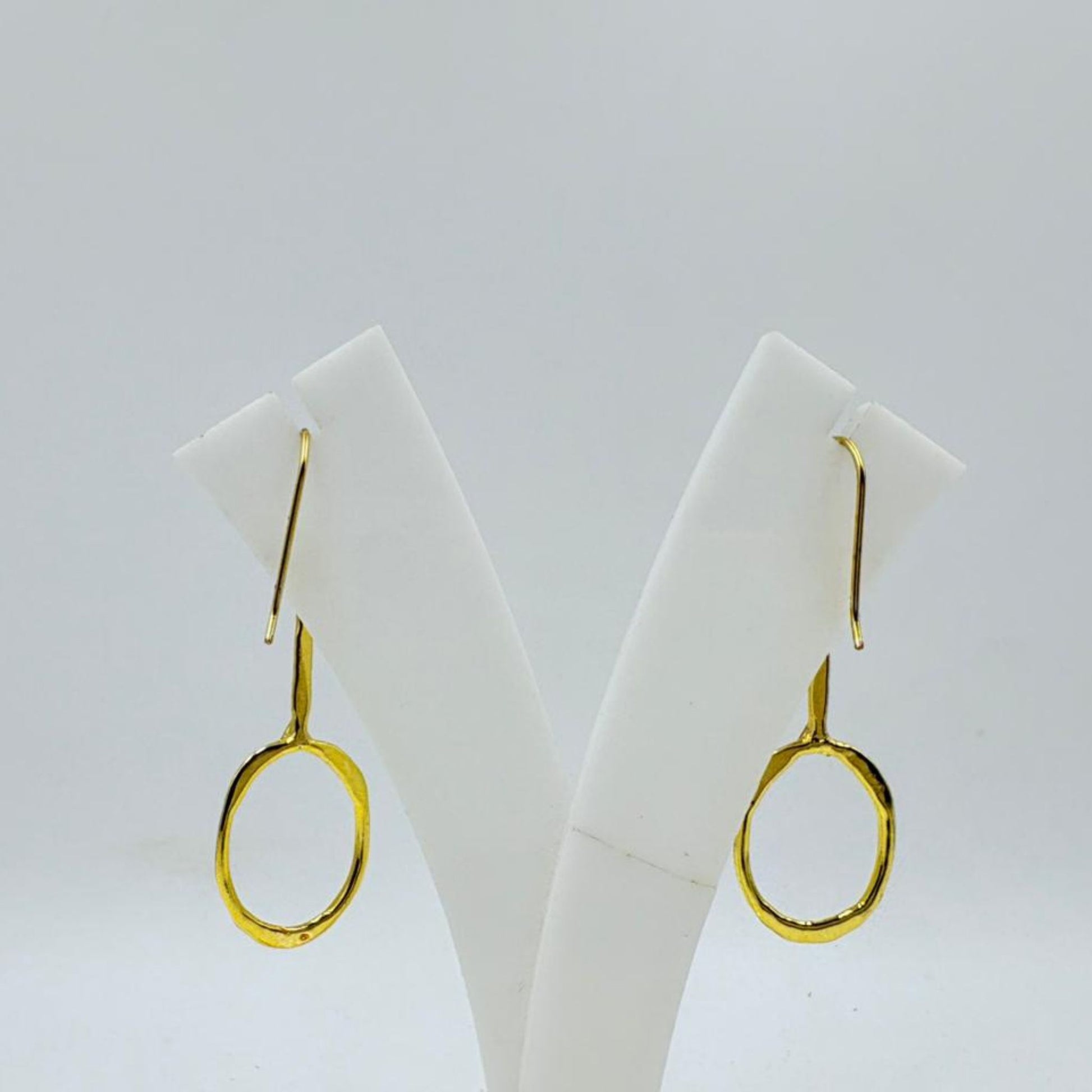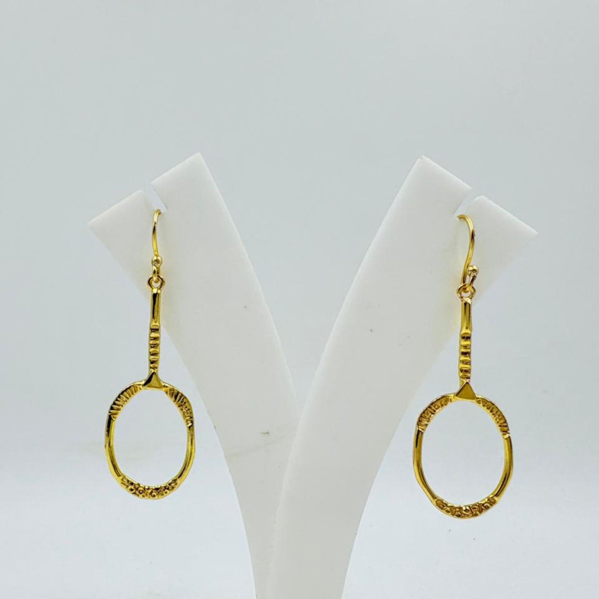 Oval hoop dangle design with minimalistic detailing.