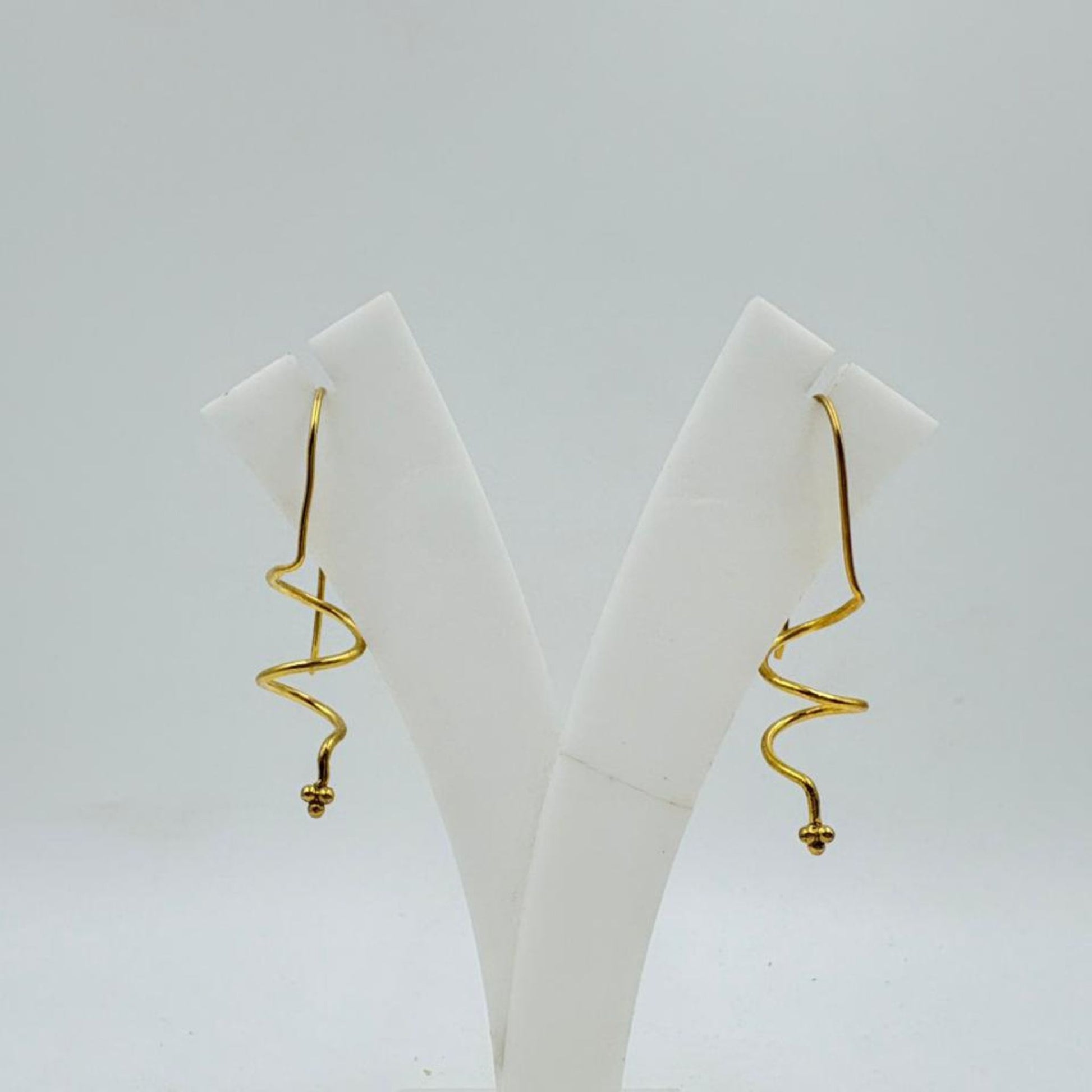 The contemporary zigzag silhouette of these brass zigzag dangle earrings with 18K gold plating – modern lightweight design (model no. 18) brings a touch of modern style to your jewelry collection. Whether for parties, festive gatherings, or daily use, these brass zigzag dangle earrings with 18K gold plating – modern lightweight design (model no. 18) will always stand out.