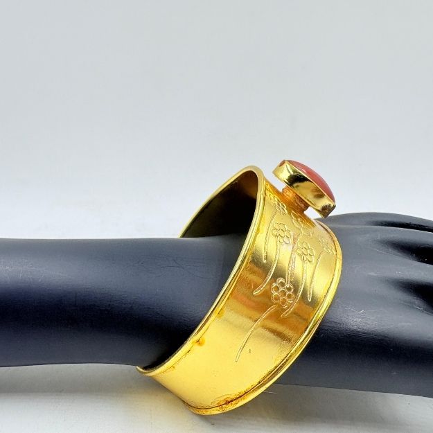 The Red Onyx Bangle is durable, handmade, and gold-plated, making it perfect for special occasions, parties, or daily wear. With its unique design and gemstone detailing, the Red Onyx Bangle is not just jewelry but also a statement of style.