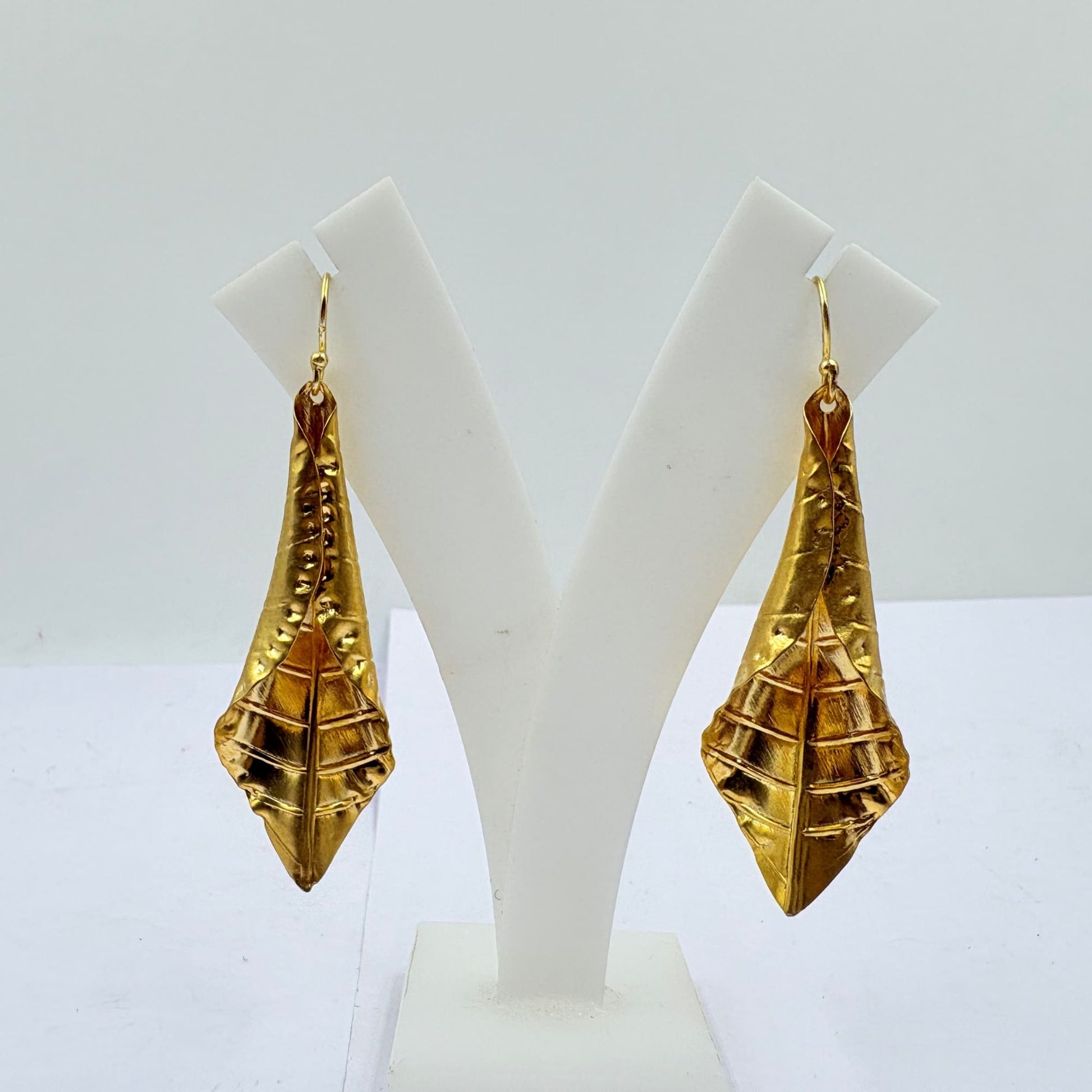 Royal Folded Leaf Earrings – Handcrafted Elegance