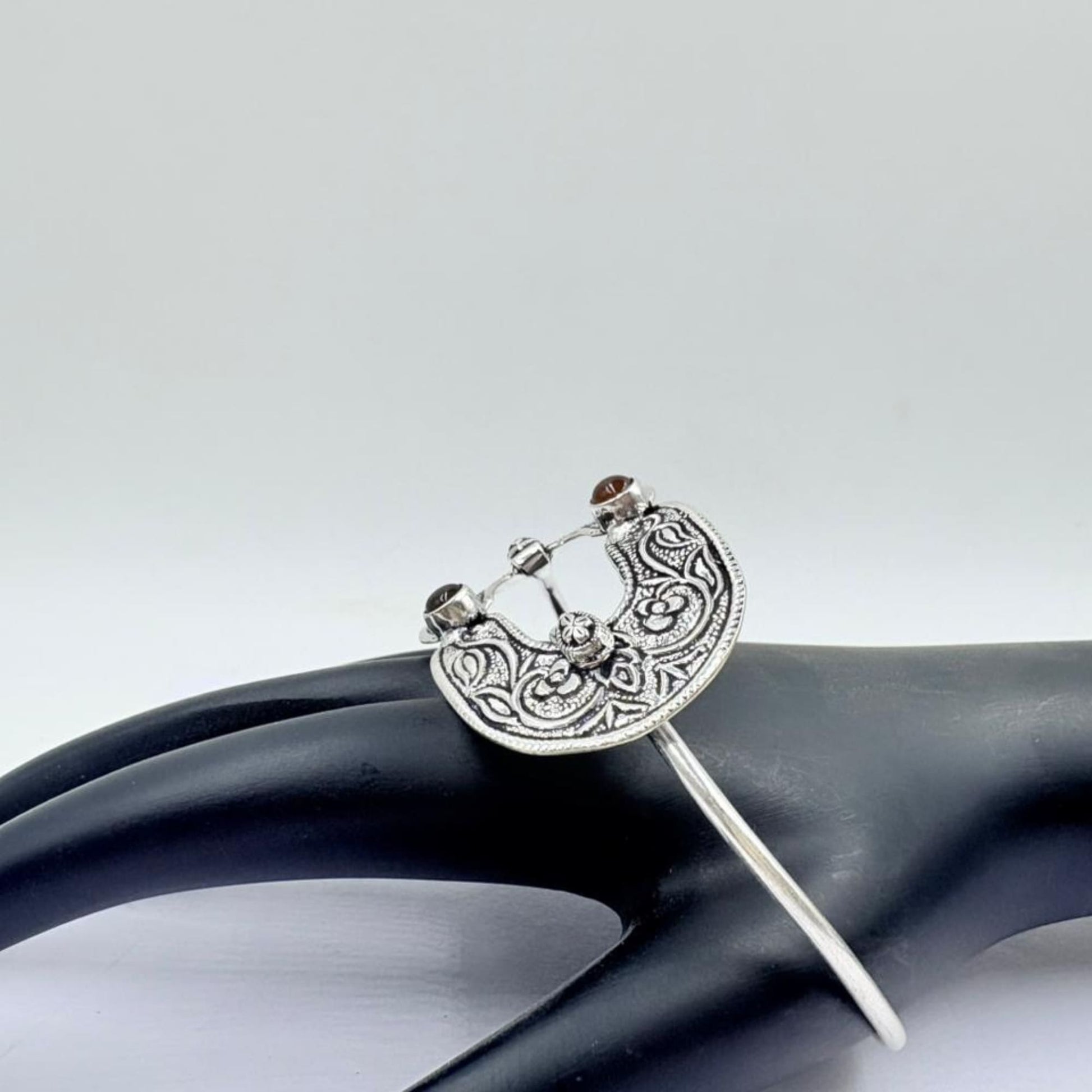 Embrace elegance with this handcrafted Red Onyx Silver Bangle, a true symbol of artistry and grace. The intricate antique-style detailing paired with striking red onyx gemstones makes this Red Onyx Silver Bangle a luxurious addition to your collection. Every element of this Red Onyx Silver Bangle reflects timeless charm, blending cultural heritage with contemporary sophistication.