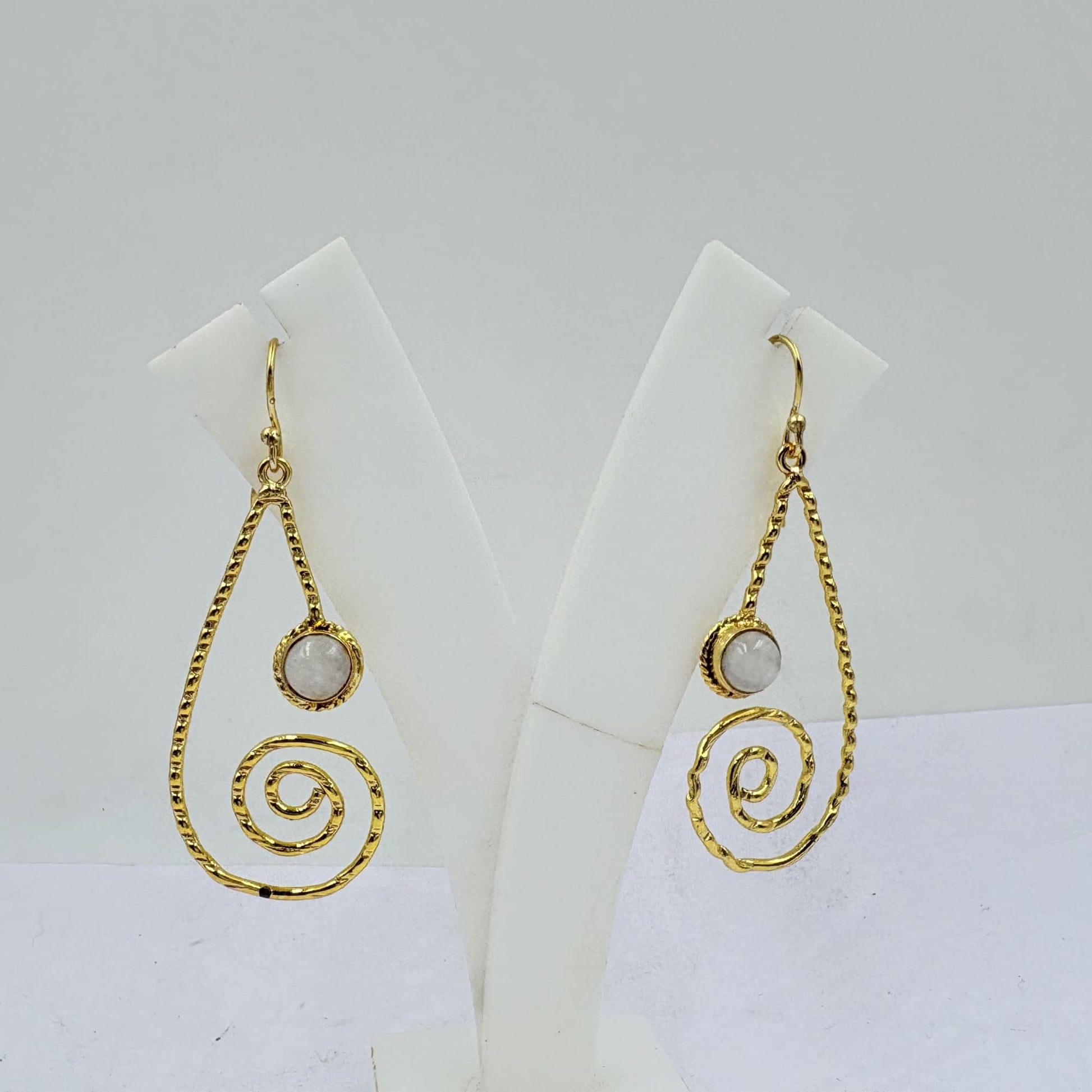 These White Rainbow Earrings are lightweight, comfortable, and handcrafted by skilled artisans who ensure perfection in every detail. The elegant blend of swirling brass and glowing gemstone gives the White Rainbow Earrings an ethereal charm—ideal for those who love timeless jewelry with a modern twist.